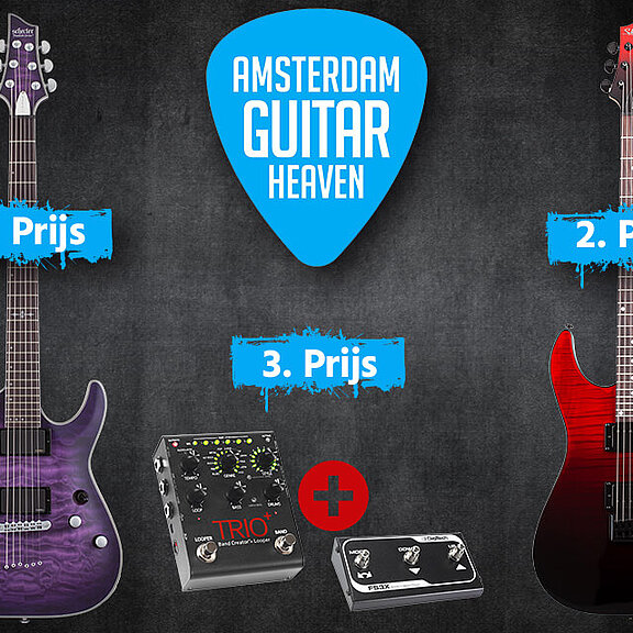 1. prijs is een SCHECTER elektrische gitaar, C-1 Platinum, Satin Purple Burst